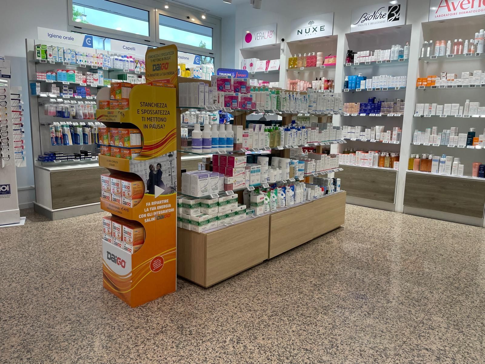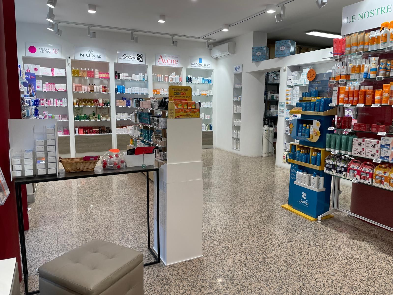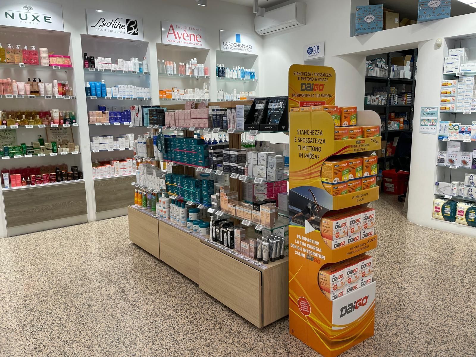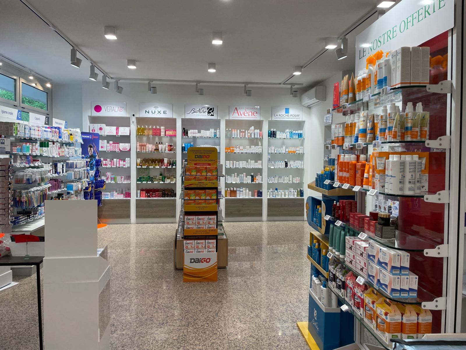 Il negozio propone, oltre ai consueti farmaci da banco, prodotti per l'infanzia, dermocosmesi, sanitari di consumo ed automedicazione, prodotti omeopatici e fitoterapici, veterinaria.